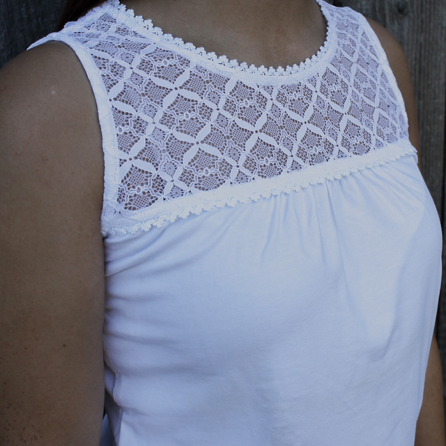 Ärmelloses Shirt mit Spitzeneinsatz.