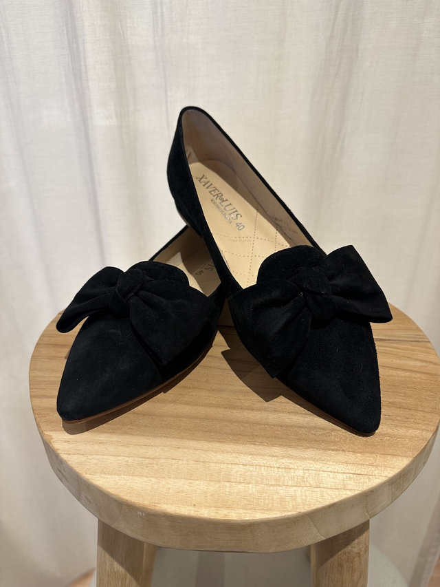 Spitze Ballerina mit Masche aus Hochwertigem Samtziegenleder.