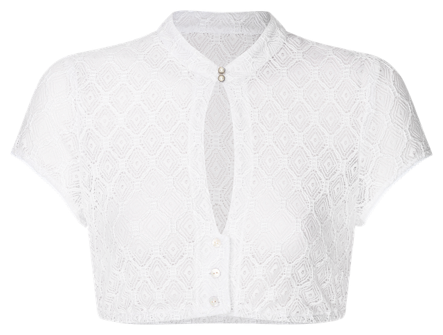 Kurzarm Dirndlbluse Hochgeschlossen mit Schlüsselloch Ausschnitt.