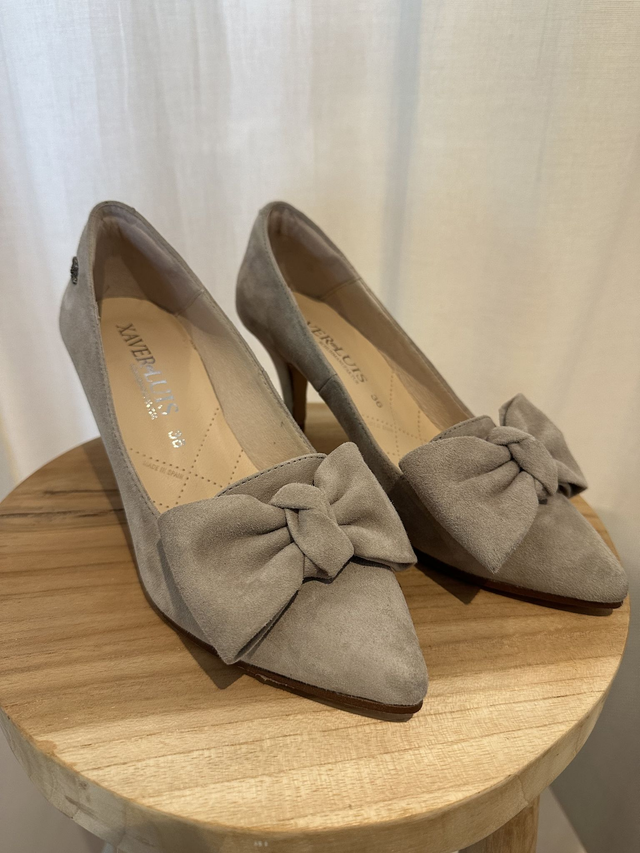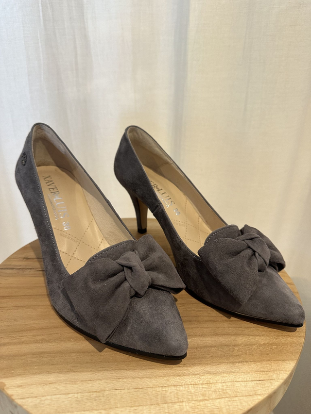 Pump aus weichem Samtziegenleder mit der wunderschönen von Hand gemachten Schleife aus Leder.