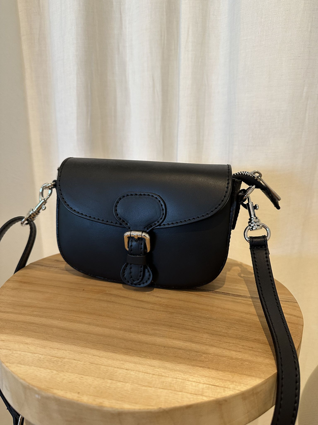 Tasche mit Schnalle zum Umhängen. Riemen abnehmbar. Die Tasche ist aus echtem Rindsleder.